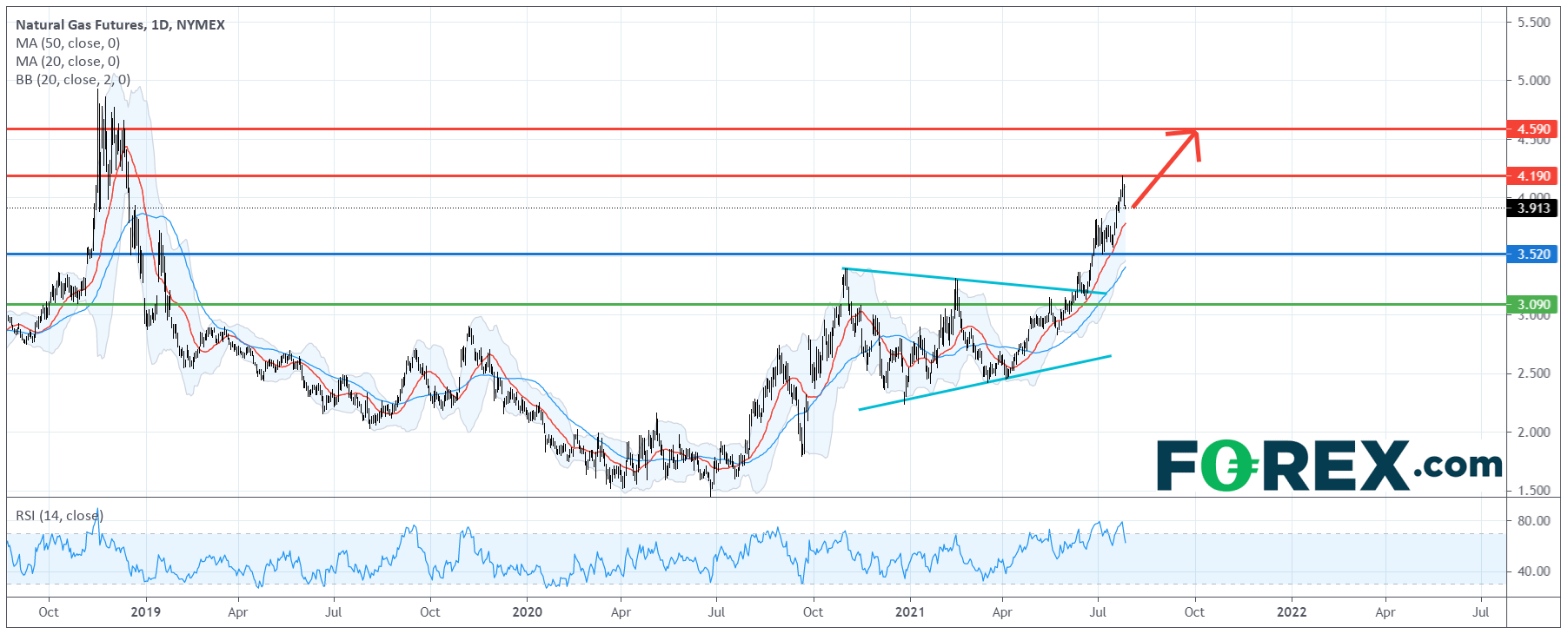 看涨的投资者可将3.52美元视为主要支持 (止损) 位,上行目标在4.19美元及4.59美元。