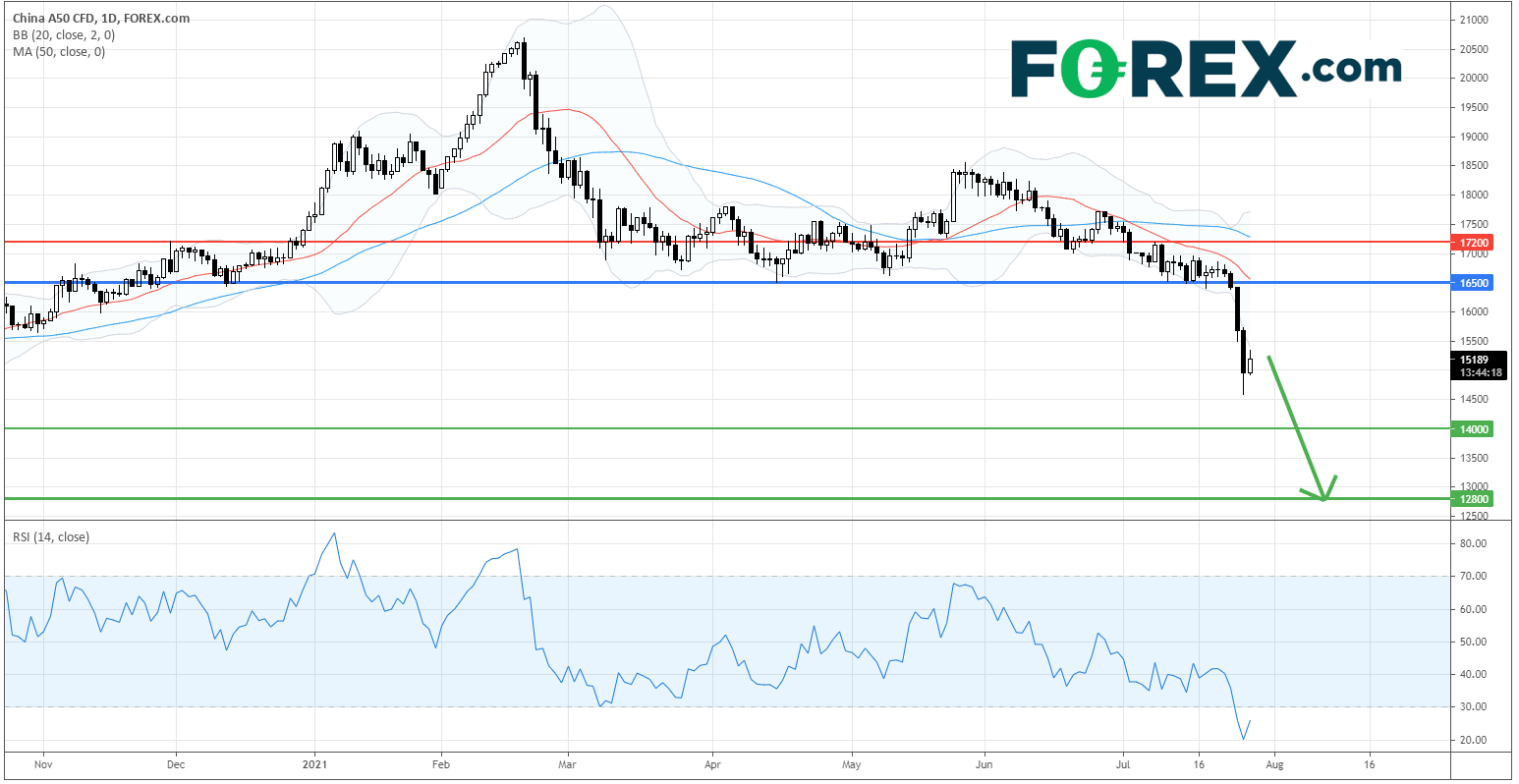 中国 A50指数 CFD : 市场极度恐慌中,或下试14,000点