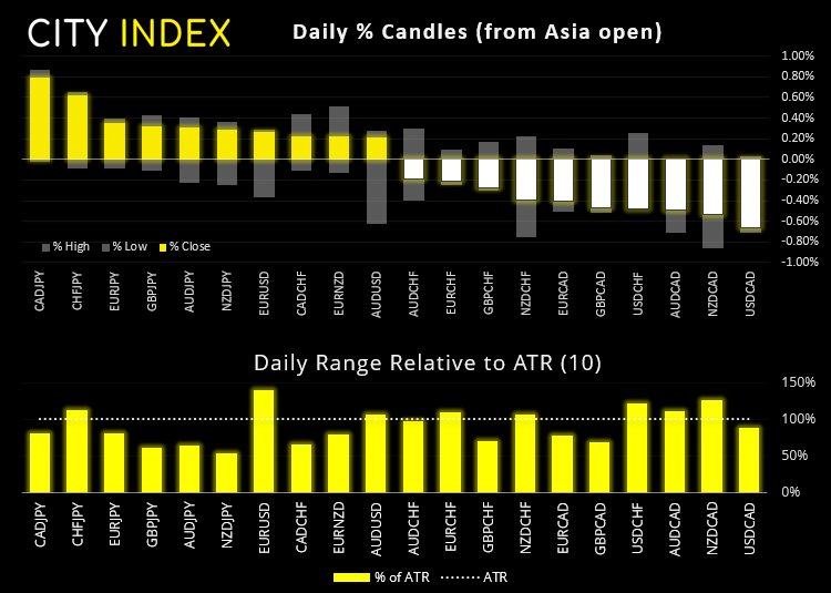 加元是最强主要货币而日元是最弱主要货币,从而将加元/日元置于涨幅榜之首。加拿大的通胀率不如预期高但还是符合加拿大央行“处于或高于3%”的近期目标,央行可能因此乐于保持缩表的路线。