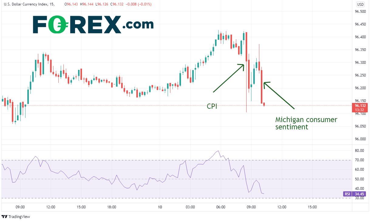 看到上述数据,市场合乎逻辑的想法是美元应当上涨,但美元指数在15分钟图上反而闻讯下跌: