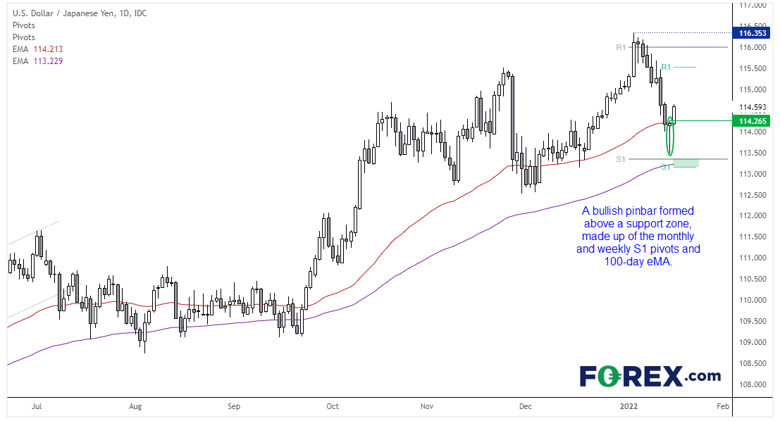 纯技术面看,美元/日元或已在上周五构筑波段低点。该货币对在由100天指数移动均线、月图与周图第一支撑枢轴组成的支撑区域上方形成看涨pinbar。而且,自116.35高点以来的修正幅度相对较大,可能是自身力量所致。美元/日元隔夜站上锤子形态高点与50天指数移动均线,今天理想的情况是守住昨天高点并扩大上行。如果有较预期温和的日本央行立场以及轻微的冒险氛围(日元走弱)的相助,美元/日元走高的可能性更高。