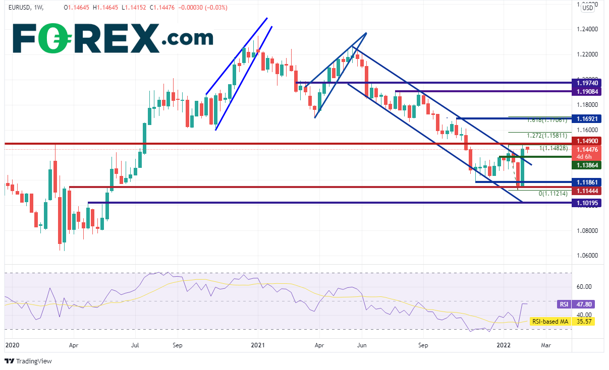 地缘政治方面,我们必须注意,欧洲深度参与了俄罗斯与乌克兰之间的谈判。法国总统Macron周一前往俄罗斯,与俄罗斯总统普京会晤,讨论从乌克兰边境撤军的问题。德国方面,Scholz前往美国,与总统拜登会晤,就当前局势展开讨论。另外,俄罗斯、乌克兰、德国和法国将在本周晚些时候就当前矛盾进行磋商。在北约深深卷入此次地缘政治危机的环境中,如果俄罗斯与乌克兰之间的关系确实恶化,欧元可能下跌。