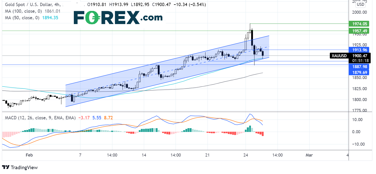 俄罗斯与乌克兰冲突方面的头条新闻继续主宰市场情绪,黄金后市可能继续震荡。