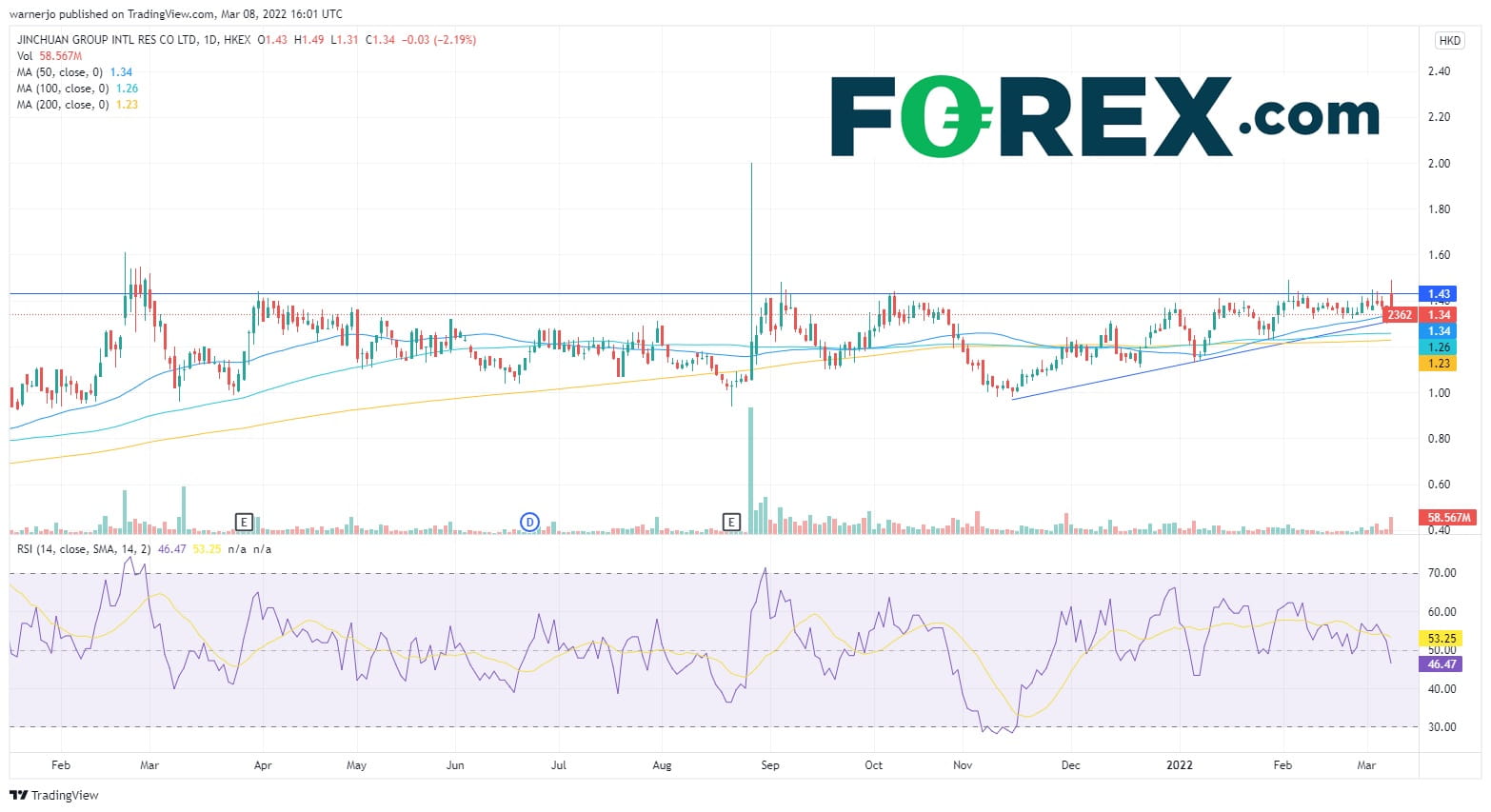 金川集团股价自11月中旬以来不断攀升但一直难以攻克1.49。该位在过去一个月里多次破坏了股价的上涨努力。所以,价格收上该位才有机会启动短线上涨趋势,重新上看2021年2月高点1.55。如果受制于1.49且上涨动能耗尽,股价可能迅速回到三根移动均线下方,最终跌破1.26。