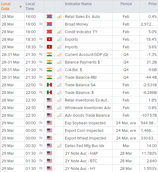 虽然3月大部分时候横盘震荡,美元指数日图仍处于强劲的上涨趋势中,20天指数移动均线不断提供支撑力量,而97.712的双底是一个上抬的低点。周五的K线可能是看涨锤子形态,表明该回档线下方存在买需。我们现在期待站上98.965后发出重拾涨势的信号,目标为100,期间目标可能在99.42高点。