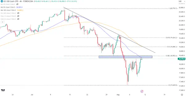 在周五缺乏数据影响的情况下,指数或继续反弹,但上方的首要阻力出现在18600一线,其次是19000整数关口,这两个位置正好对应了关键长期均线和斐波那契回调位。指数想要完全突破这一带的阻力或许还需要一些时间。