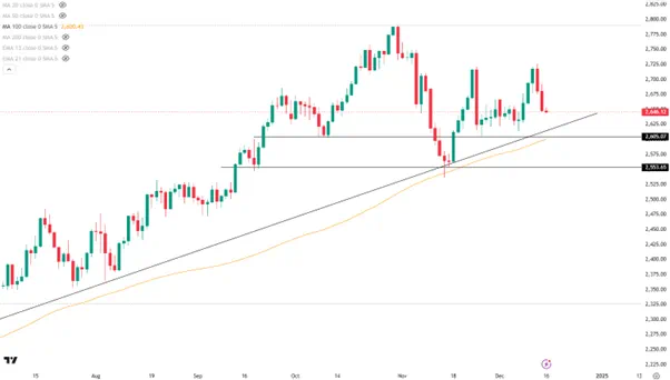 由于本周有美联储等众多央行会议,且年末流动性逐渐降低,黄金的一周隐含波动率小幅升高至14.85%,这意味着金价本周大概率在2591.81-2703.01之间波动,即周五收盘价上下各55美元的范围。