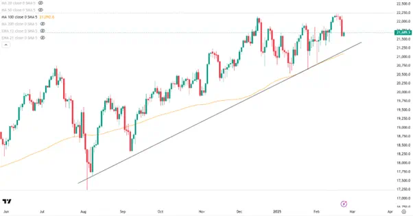 纳指周一开盘在21600附近出现逢低买入的力量,不过在英伟达本周三财报公布之前,美股或仍受制于上周五的跌幅,在突破21800之前,空头或占据主导。