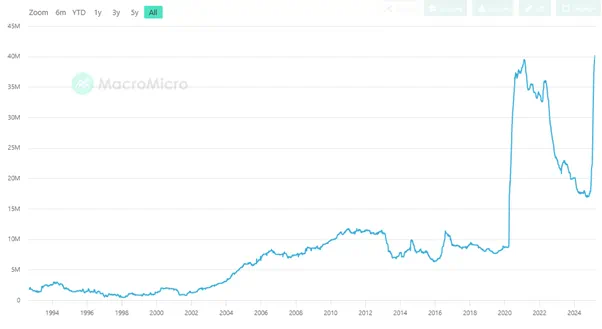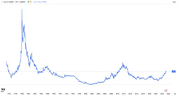 黄金价格/美国M2货币供应 来源:Tradingview